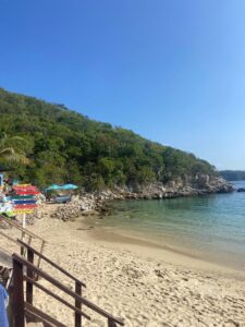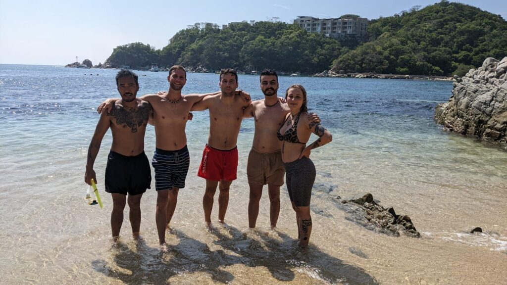 Das Update lautet, kein Sonnenbrand! Nun ist es 16:30 Uhr und eben sind wir von unserem Schnorchel-Ausflug nach Hause gekommen. Die Fahrt kam mir sehr lange vor… Auf dem Hinweg dauerte es etwa 2 Stunden und auf dem Rückweg, dank Verkehr 2.5 Stunden. Wir waren aber nur zu 5 (also Felix und ich, sowie die 3 Australier), was bedeutet umso mehr Platz im Van. Um etwa 9:00 Uhr sind wir dann in Huatulco angekommen. Erstmal konnten wir 30 Minuten Pause machen, bevor es los ging, um einen Kaffee zu trinken. Was wir Alle dringend brauchten! Danach kriegten wir alle Flossen, Tauchbrille + Mundstück. Weitere 10 Minuten mit dem Van war unser Endziel erreicht. Ein wunderschöner Strand, ausnahmsweise ohne grosse Wellen. Perfekt um zu baden. Die Verwirrung war jedoch gross. Irgendwie nahmen wir an, zumal wir auch Schwimmvesten bekamen, dass wir auf ein Boot gehen und von dort aus die Tour machen. So war das aber nicht, gleich an dem Strand würde die Unterwasser Reise starten. Ein kleiner Junge von 13 Jahren würde uns den Weg weisen. Erst sahen wir nicht besonders viel. Voreilig waren wir etwas enttäuscht. Später, etwas tiefer im Wasser sahen wir dann aber wunderschöne, farbige Fische. Die Korallen waren, im Gegensatz zu den Fischen braun. Was mich erneut traurig stimmte. Es ist krass zu sehen, wie sehr die Meeres-Verschmutzung die Riffe angreift und in ihrer Farbe verändert. Sie sahen ausgebleicht und leblos aus… Nach 1.5 Stunden machten wir an einem kleinem Strand eine kurze Pause bevor wir in eine winzige Höhle getaucht sind. Die Stimmung dort drin war magisch, wie das Licht mit dem Wasser bricht war wunderschön. Paar Bilder später machten wir uns auf den Rückweg an den Strand.
