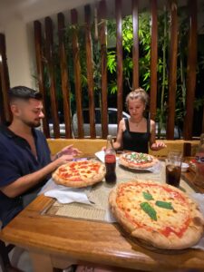Nach dem Spaziergang machte ich mich auf den Weg, zu einem neuen Strand. Wo ich Pati, Fabio und Chris traf. Playa Manzallilo. Die Wellen sind da eher ruhig, weshalb man gut schwimmen kann. Wir assen am Beach Zumittag. Die Aussicht war unschlagbar. Das Essen eher schlecht… Die anderen nahmen Spagethi mit Meeresfrüchten, was alle nicht mochten und ich ein Chicken, was ganz okay war.